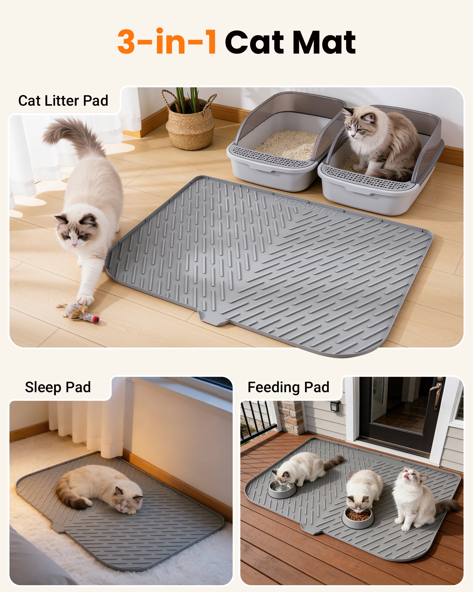 Vacqueen Cat Litter Box Mat – Large, Non-Slip, Easy Clean – Protect Your Floors & Keep Your Home Fresh, 47" x 37"